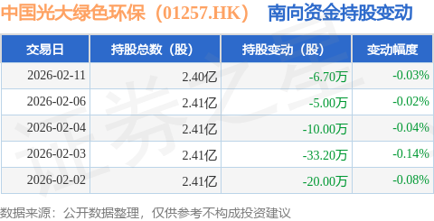 证券之星消息,2月11日南向资金减持6.7万股中国光大绿色环保(01257.HK)。近5个交易日中,获南向资金减持的有5天,累计净减持74.9万股。近20个交易日中,获南向资金减持的有20天,累计净减持239.3万股。截至目前,南向资金持有中国光大绿色环保(01257.HK)2.4亿股,占公司已发行普通股的11.63%。